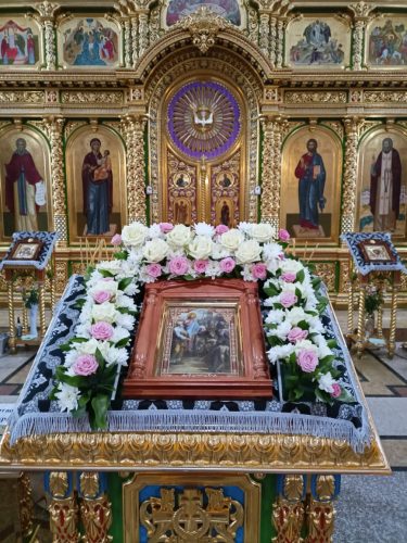 В храме особо почитаются святыни, полученные из Свято-Троицкого Серафимо-Дивеевского монастыря, – икона с частицей мощей прп. Серафима Саровского. частицы мощей преподобных жен Дивеевских схимонахини Александры (Мельгуновой), схимонахини Марфы (Милюковой), монахини Елены (Мантуровой); блаженных жен Дивеевских Пелагеи, Параскевы и Марии и преподобноисповедницы Матроны (Власовой). Частички мощей святых Дивеевских жен помещены в икону «Собора Дивеевских святых». В 2014 приходу были переданы 80 частиц прп. отцов Киево-Печерских, которые помещены в писаную икону Собора преподобных Киево-Печерских. Здесь так же есть иконы с частичками мощей Собора Курских святых, Собора Глинских святых, апостола Андрея Первозванного, великомученика Пантелеимона, преподобного Кукши Одесского, святителя Иннокентия Херсонского, священномученика Николая Искровского и другие.